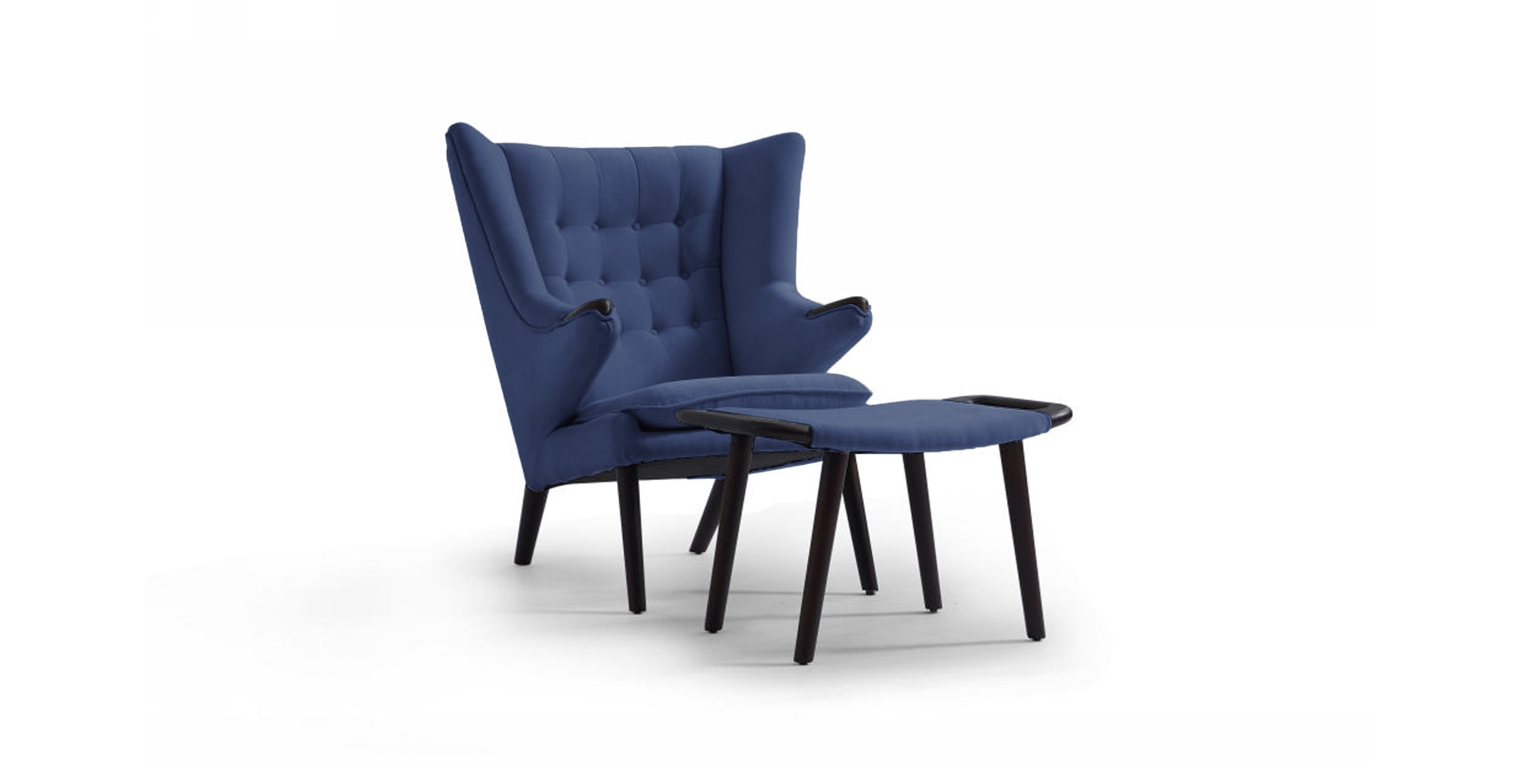 Papa Bear Chair & Ottoman - Twill Urban Ink. The Papa Bear Chair and Ottoman is a uniquely Danish high wing-back chair and one of the most iconic lounge chairs of mid-century design. Created in 1951 by Hans Wegner, it stands as a masterpiece within his renowned collection, embodying comfort, li... - Papa Bear Chair & Ottoman - Twill Urban Ink. | | $2395.00 More Information